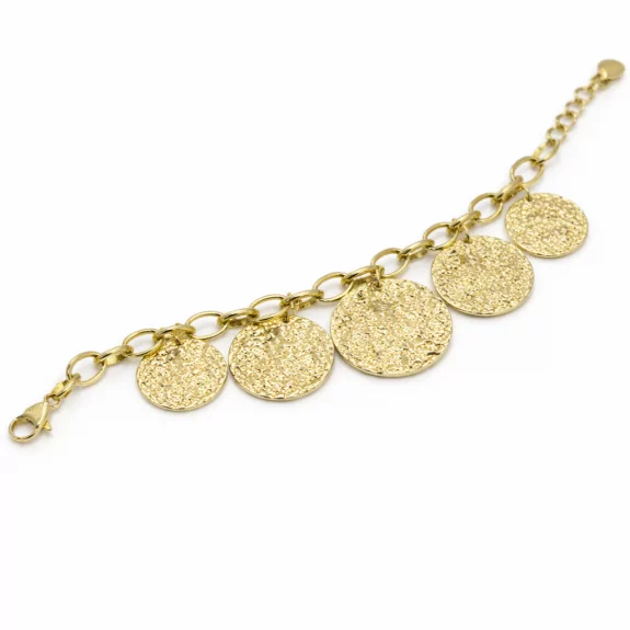 Bracelet doré élégant avec médailles texturées. Un bijou tendance au style affirmé.