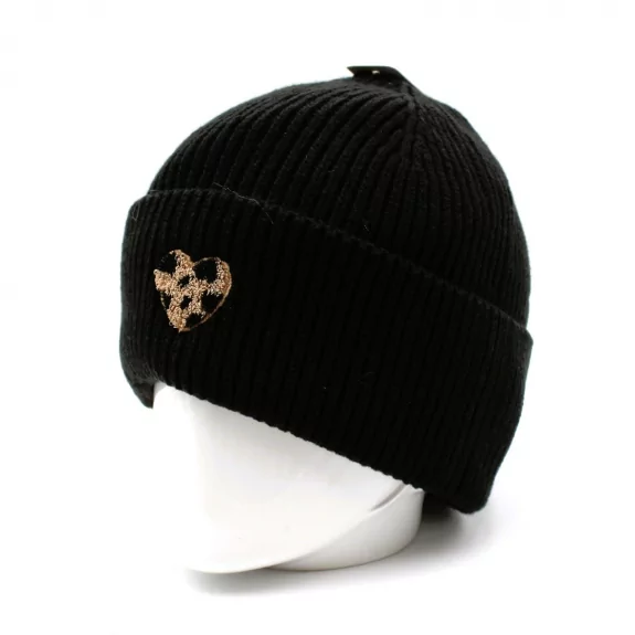 Bonnet côtelé tendance haut de gamme avec un cœur aux motifs léopards