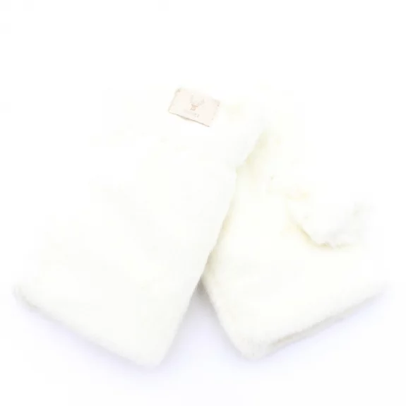 Gants ou mitaines avec moumoute. Possibilité de mettre ce produit en gants ou en mitaines.