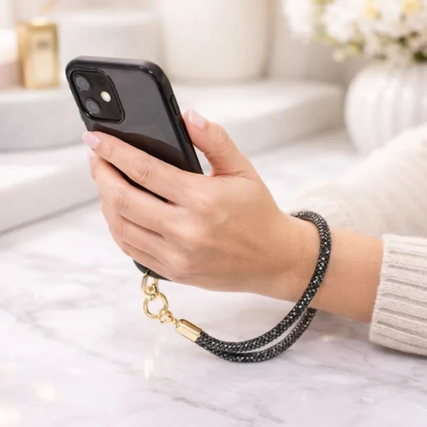 Avec accroche pour téléphone. S'adapte à tous les modèles.