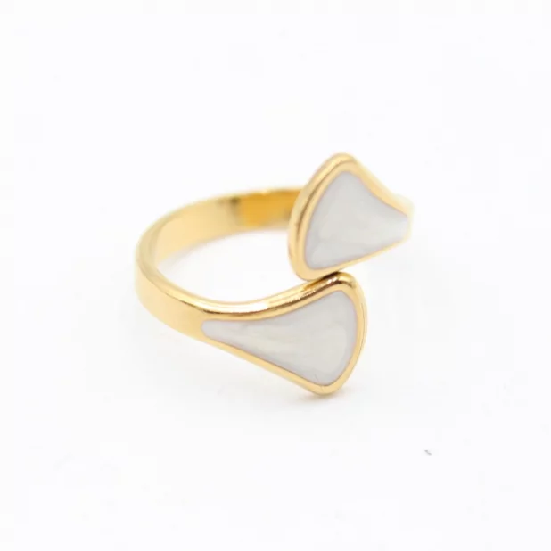 Les touches de couleur, intégrées dans la forme de la bague, apportent une note lumineuse et stylée, idéale pour personnaliser chaque look. Grâce à sa conception en acier inoxydable doré, la bague résiste à l’usure du quotidien tout en conservant sa brillance.