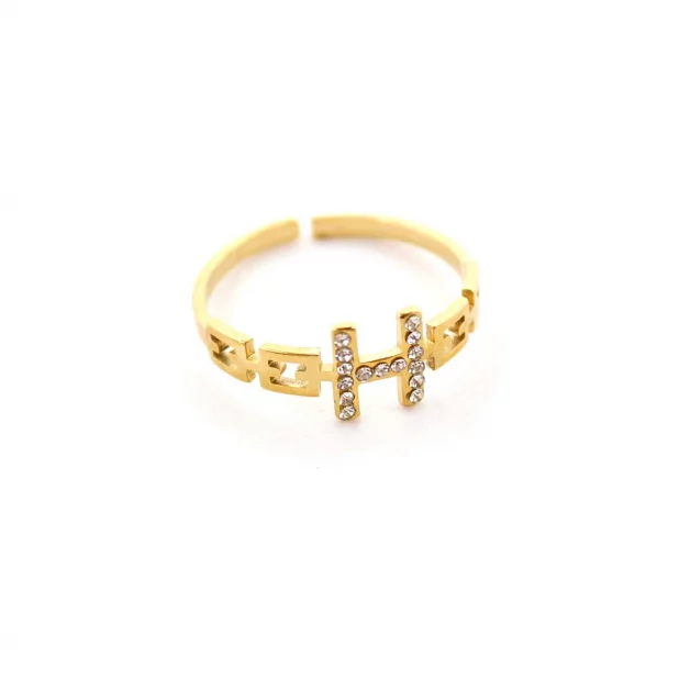 Bague en acier inoxydable dorée ou argentée, lettre H élégante avec petits strass. Bijou chic et résistant proposé par votre grossiste bijoux à Lyon.