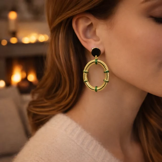 Boucles d'oreilles en acier inoxydable avec un anneau et des bagues colorées