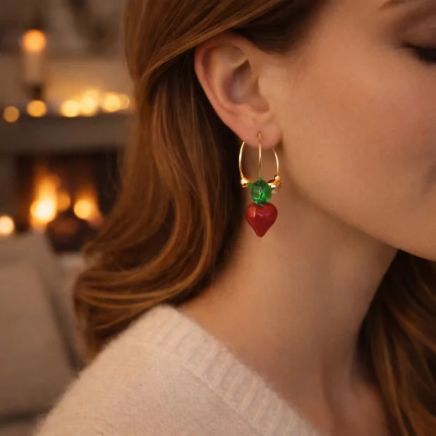 Créole en acier inoxydable avec un pendentif coeur rouge