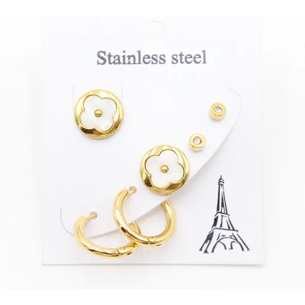 Affirmez votre style avec ce pack de 3 paires de boucles d’oreilles en acier inoxydable, un coffret chic et raffiné conçu pour accompagner toutes vos envies. Ce set harmonieux associe minimalisme, féminité et modernité, idéal pour un usage quotidien comme pour des occasions plus habillées.