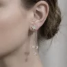 Ce bijou se compose d’une étoile centrale sertie de strass fixée sur le lobe, prolongée par de fines chaînes délicates ornées de petites étoiles scintillantes. L’effet pendulaire apporte légèreté et féminité tout en captant subtilement la lumière à chaque mouvement.