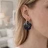 Boucles d’oreilles créoles avec grande fleur en résine colorée et anneau en acier inoxydable doré. Modèle tendance et original disponible en plusieurs couleurs.
