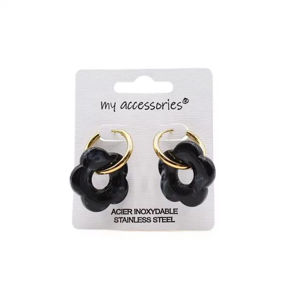 Grandes créoles Mahju fleur résine – Acier inoxydable doré