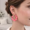 Apportez de la couleur et du style à vos collections avec ces boucles d’oreilles créoles ornées de perles en résine colorée.