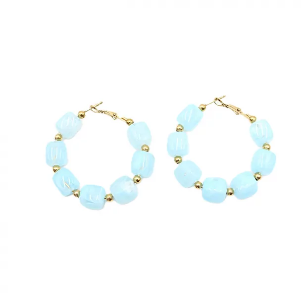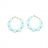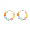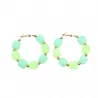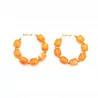 Créoles tendance avec perles en résine colorée et structure en acier inoxydable doré. Modèle lumineux disponible en plusieurs couleurs.