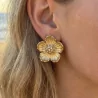 Laissez-vous séduire par ces boucles d’oreilles en forme de fleur, un incontournable pour une collection élégante et tendance. Leur design floral travaillé, avec des détails délicats au centre, apporte du relief et capte subtilement la lumière.