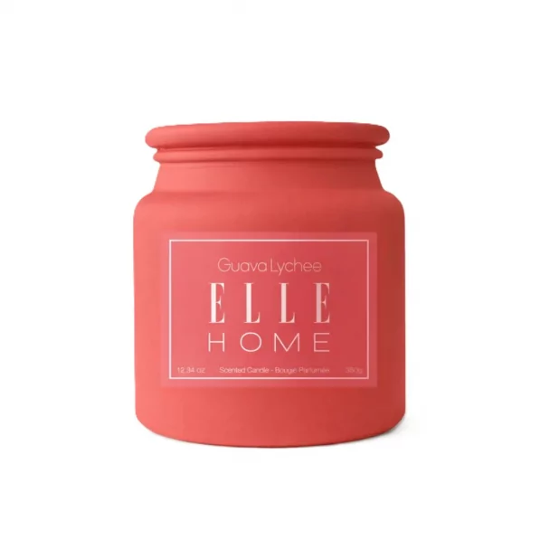Évadez-vous avec la bougie Guava Lychee ELLE Home. Une fragrance exotique mêlant goyave et litchi pour une ambiance fraîche, tropicale et vivifiante.