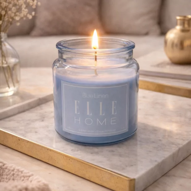 Offrez à votre intérieur une sensation de linge fraîchement lavé avec la bougie Blue Linen ELLE Home 350g. Une senteur douce, propre et réconfortante.