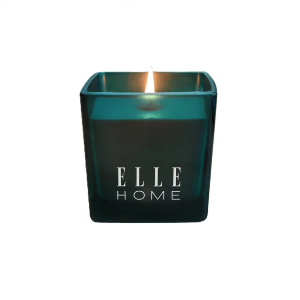 Présentée dans un élégant contenant en verre carré vert profond, cette bougie au design contemporain s’intègre parfaitement dans un intérieur chic et cosy.