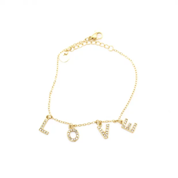 Bracelet en acier inoxydable avec des lettres en strass message LOVE