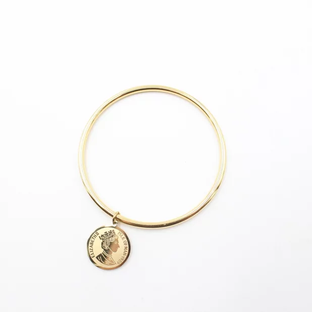 Bracelet jonc en acier inoxydable avec pampille Reine Elizabeth II