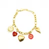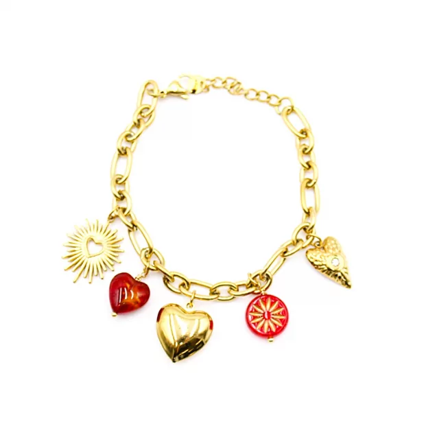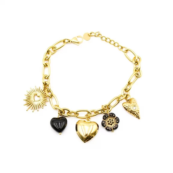 Bracelet doré en acier inoxydable avec des breloques : coeur, fleur ...