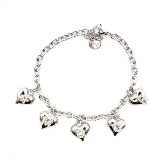 Bracelet avec des breloques dorées en acier inoxydable : soleil, lune, cœur