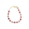Bracelet en acier inoxydable doré avec motifs fleurs ornés de strass colorés. Bijou tendance et lumineux disponible en plusieurs couleurs.