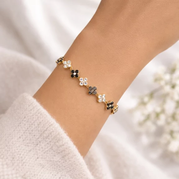 Composé d’une chaîne délicate ornée de fleurs scintillantes, ce bracelet capte la lumière et illumine le poignet. Les différentes nuances de cristaux créent un effet lumineux et raffiné, parfait pour les collections printemps/été.