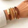 Le jonc en acier inoxydable doré ajoute une touche précieuse et minimaliste, tout en garantissant résistance et durabilité. Faciles à enfiler, ces bracelets sont légers et agréables à porter tout au long de la journée.