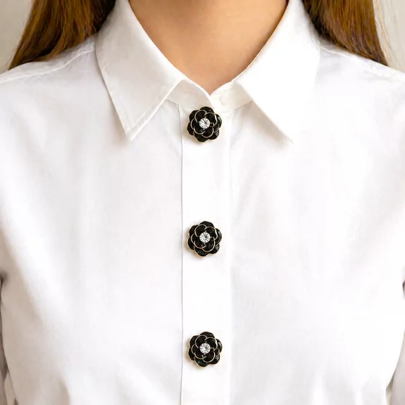 Apportez une note de raffinement et de couleur à vos tenues grâce à ces broches boutons en forme de fleur ornées de strass scintillants. Conçues pour remplacer les boutons classiques, elles transforment instantanément une chemise simple en une pièce élégante et originale.