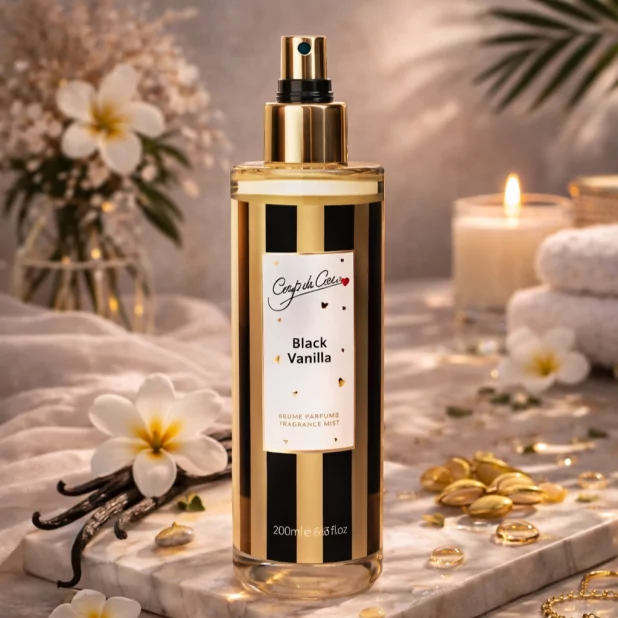Succombez à l’élégance mystérieuse de Black Vanilla, une brume parfumée ultra légère à la sensualité envoûtante. Cette interprétation audacieuse de la vanille marie des notes boisées profondes à une vanille noire et charnelle. Un parfum intense, sophistiqué, qui laisse sur la peau un sillage captivant et singulier.
