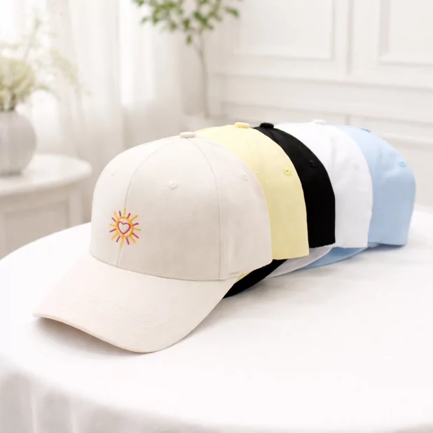 Chaque casquette est décorée d’un motif soleil avec cœur, apportant une note joyeuse et originale. Les coloris variés permettent de s’adapter à tous les styles, du plus neutre au plus coloré.