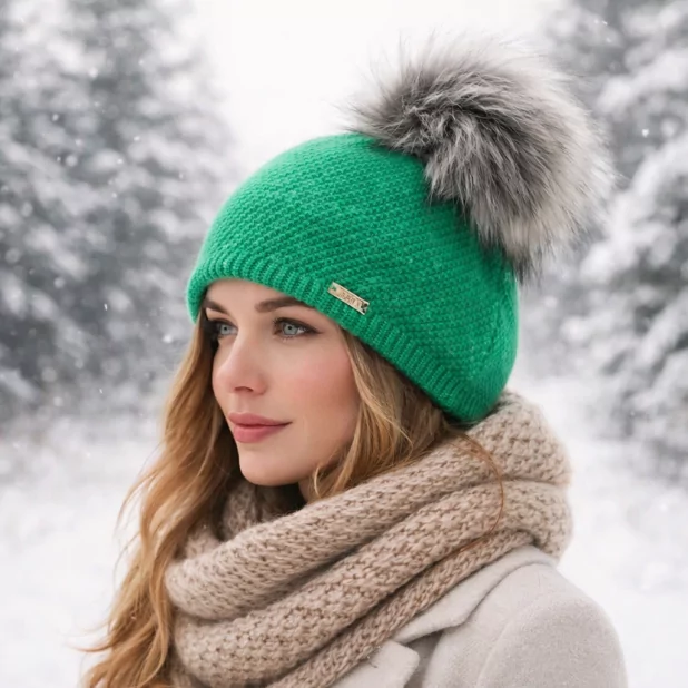 Bonnet tendance haut de gamme avec pompon et doublé polaire