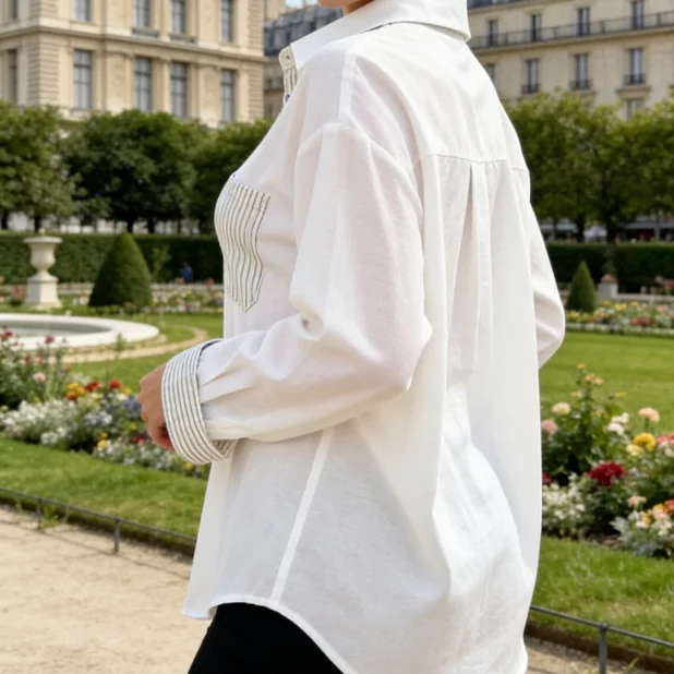 Cette chemise femme oversize tissu unique est parfaite pour les boutiques recherchant des pièces tendance, faciles à associer et à forte rotation.