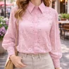 Chemise femme en dentelle élégante, composition 50% coton 50% polyester, taille unique. Disponible en bleu ciel, rose et blanc. Idéale pour boutiques tendance.