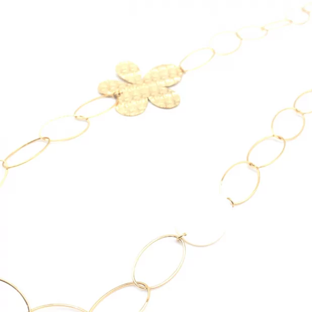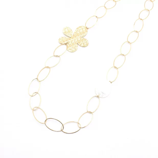 Sautoir doré en acier inoxydable avec fleurs et breloque nacrée