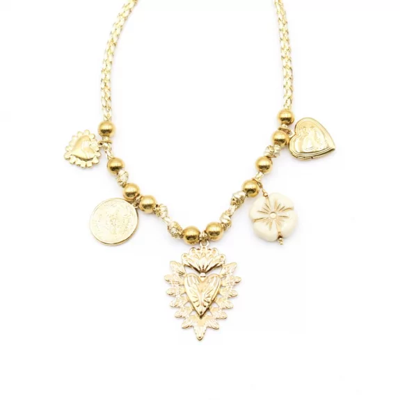 Collier en acier inoxydable avec un pendentif corne et pampilles