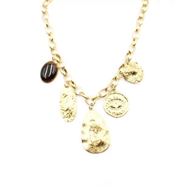 Collier en acier inoxydable avec breloques et motif oeil