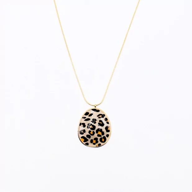 Collier en acier inoxydable avec un cabochon top tendance motif léopard