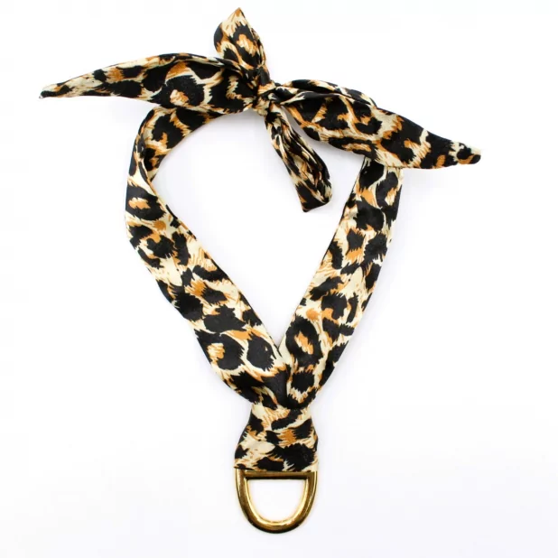 Collier avec un ruban motif léopard et un pendentif luxe en acier