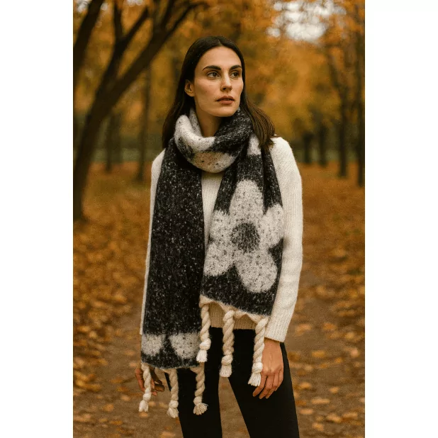 écharpe tendance et chaude pour la collection hiver avec pour motif des fleurs.