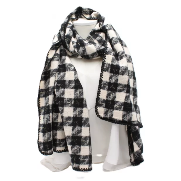 Echarpe à carreaux noirs et blancs avec fils lurex