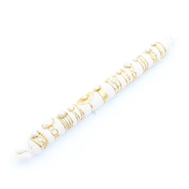 Pack de 12 bagues en acier inoxydable dorées avec perle