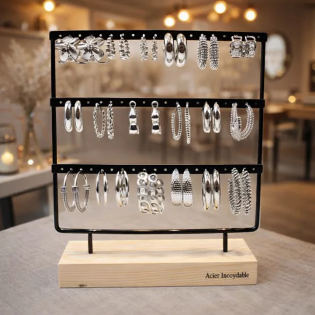 🌟 Notre présentoir offre une vitrine attrayante pour les boucles d'oreilles, en les présentant de manière organisée et esthétique.
