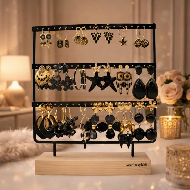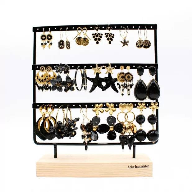 Pack de 18 boucles d'oreilles acier - NOIR