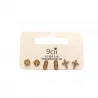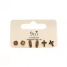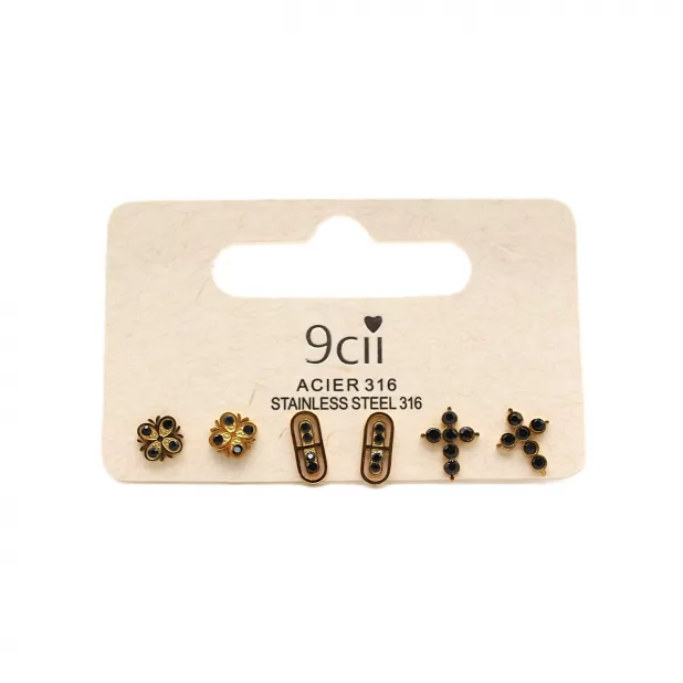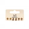 Pack de petites boucles d’oreilles en acier inoxydable avec différents motifs : croix et fleurs. Modèles tendance disponibles en plusieurs couleurs.