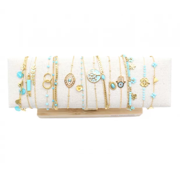 Pack de 12 bracelets acier - doré turquoise