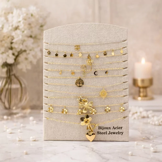 🎁 Ce lot de colliers en acier inoxydable est un choix idéal pour les bijouteries, les étals des marchés artisanaux et toute entreprise de vente au comptoir. Proposez à vos clients une sélection variée de colliers pour tous les goûts et toutes les occasions, tout en augmentant vos ventes et en fidélisant votre clientèle.