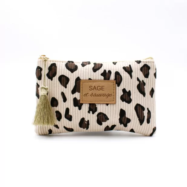Petite pochette avec des motifs léopard et un message - Sage et sauvage
