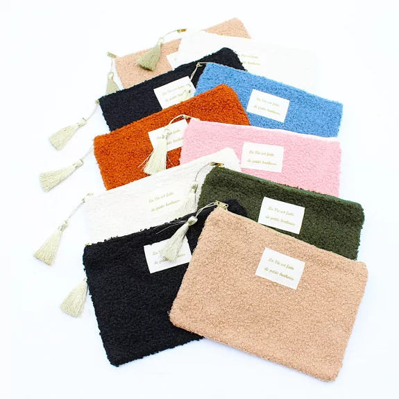 Pack de 10 pochettes en moumoute avec un pompon et un message La vie est faite de petits bonheurs