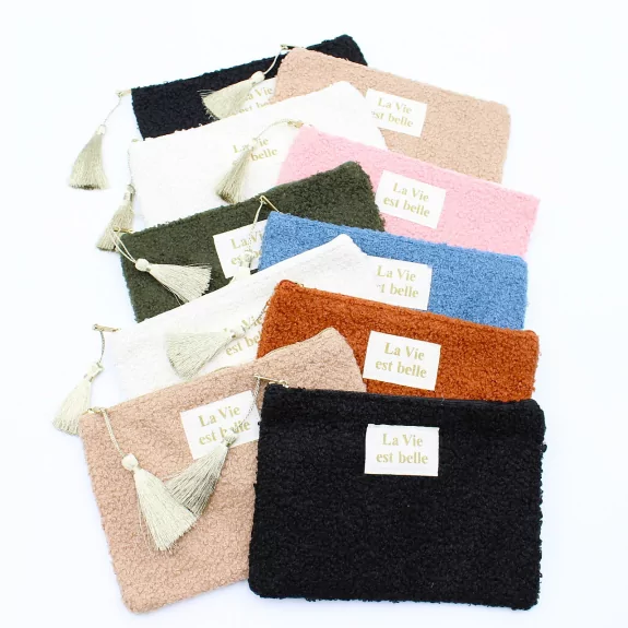 Pack de 10 pochettes en moumoute avec un pompon et un message La vie est belle