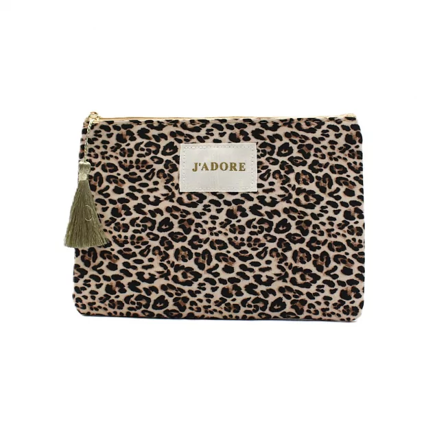 Ajoutez une touche sauvage et tendance à votre quotidien avec cette pochette à motif léopard au message positif « J’adore ». À la fois chic et pratique, elle est idéale pour ranger maquillage, papiers, accessoires ou petits indispensables du sac.