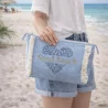 Complétez votre collection estivale avec cette pochette Sand Beach, un accessoire à la fois pratique et tendance. Confectionnée en toile coton effet jean, elle séduit par son design frais et moderne avec un cœur imprimé motif léopard et l’inscription “Sand Beach”.