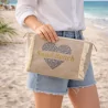 Pochette en toile coton avec motif cœur imprimé et inscription “Sand Beach”. Compacte et pratique, idéale pour accessoires, maquillage ou plage. Disponible en plusieurs coloris.